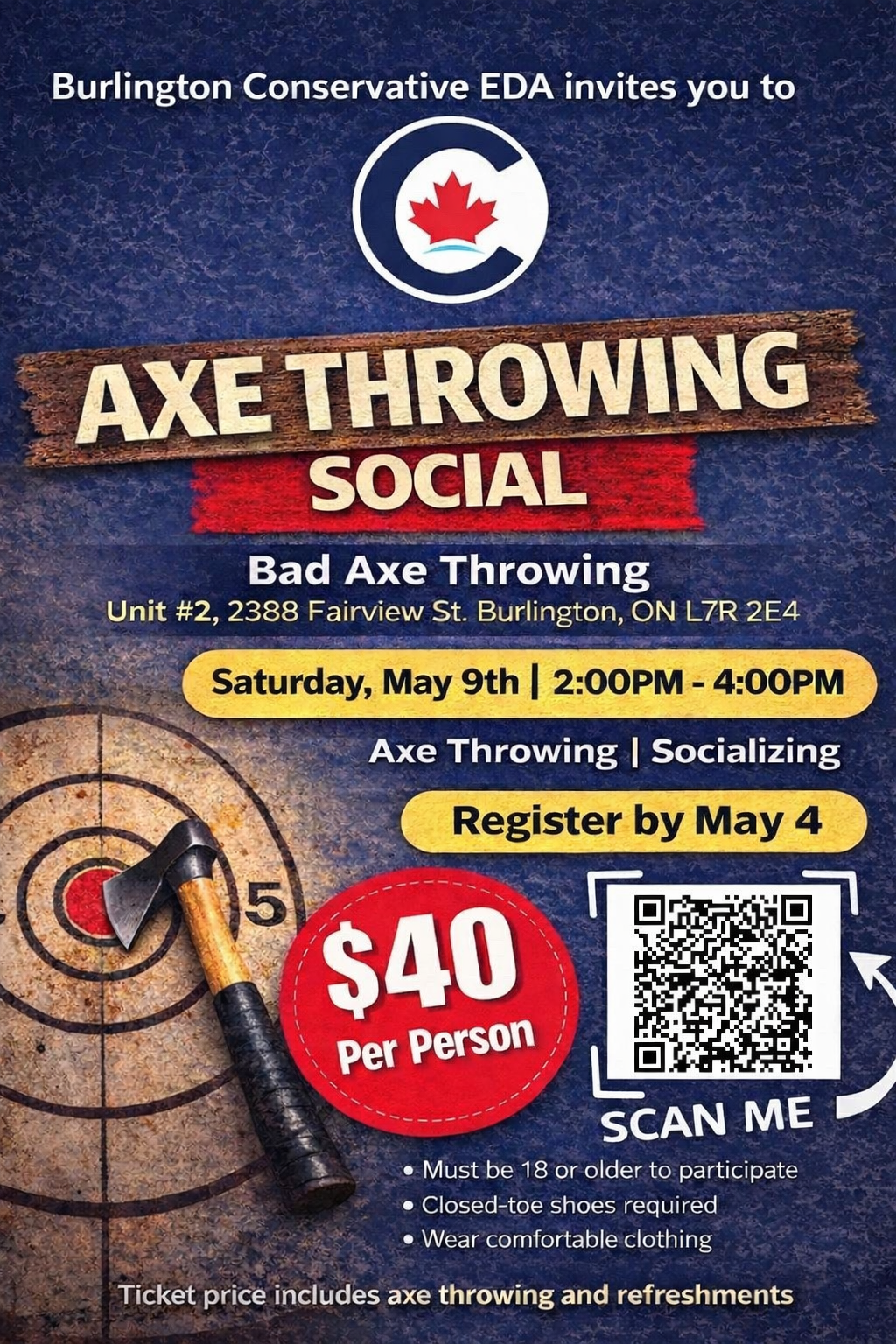 Join the Burlington Conservative Association (BCA) for a fun and unique afternoon at our first-ever Axe Throwing Event!